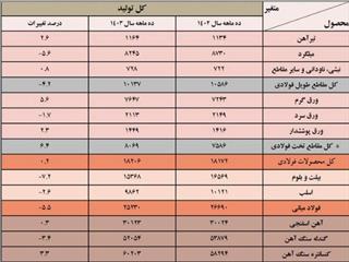 بر این اساس تولید کل مقاطع طویل فولادی در ۱۰ ماهه اول سال ۱۴۰۳ نسبت به ۱۰ ماهه اول سال گذشته ۴.۲ کاهش یافته است.