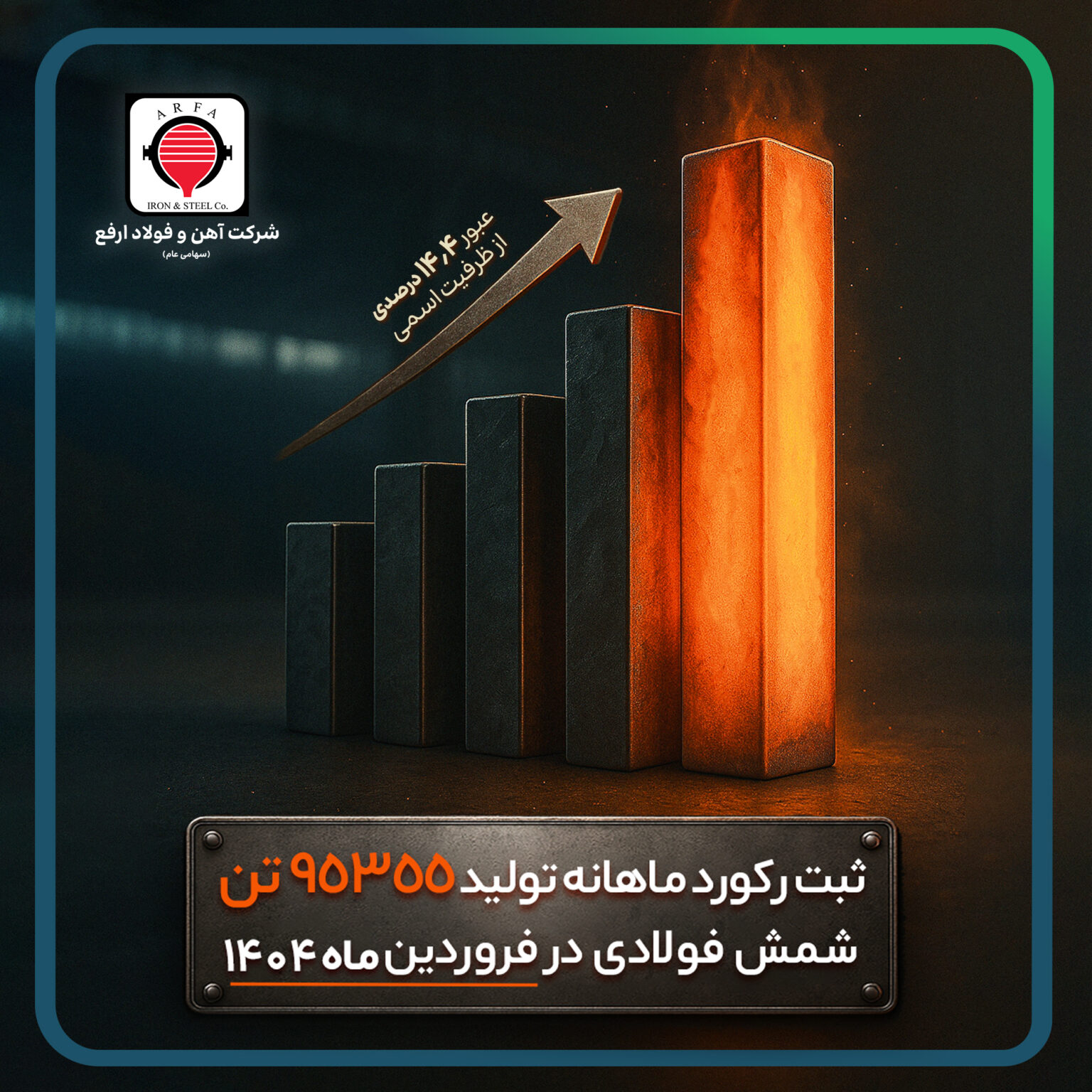 شرکت ارفع موفق شد با تولید ۹۵۳۵۵ تن شمش فولاد در فروردین‌ماه ۱۴۰۴ به همت کارکنان خود، رکورد تولید در یک ماه را در طول تاریخ حیات این شرکت بشکند و قریب به ۱۵ درصد از برنامه پیش‌بینی شده پیشی بگیرد.