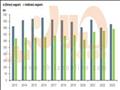 نمودار گویای کاهش شکاف صادرات مستقیم و غیرمستقیم فولاد جهان در دهه ۲۰۱۳ تا ۲۰۲۳ است.