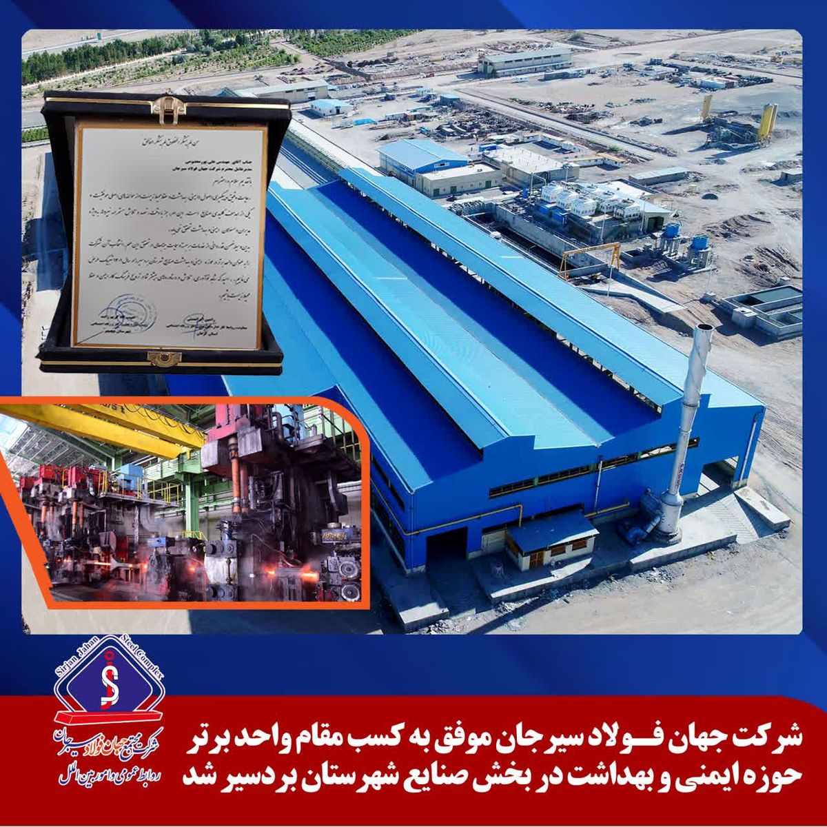 به گزارش فولادنامه، این انتخاب به خاطر تلاشهای شرکت برای ارتقای مهارتهای شغلی و انتقال دانش و آموزش به همکاران، رعایت اصول و پروتکل های بهداشتی و ایمنی برای حفظ سلامتی کارکنان بوده و طی مراسمی با اهدا لوح تقدیر به مدیرعامل شرکت جهان فولاد از شرکت به عنوان واحد برتر حوزه ایمنی و بهداشت در بخش صنایع شهرستان بردسیر در کارخانه نورد میلگرد بردسیر در سال ۱۴۰۱ تجلیل به عمل آمد.